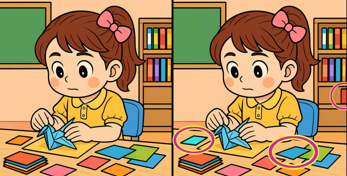 Tak čo, ste pripravení na ďalšiu výzvu? Pozrite sa pozorne na dva obrázky dievčaťa, ktoré vyrába papierové vtáky. Na prvý pohľad možno vyzerajú rovnako, ale sú tu tri malé rozdiely. Myslíte si, že ich všetky nájdete za 19 sekúnd? Vyskúšajte to a otestujte svoju ostrosť zraku!