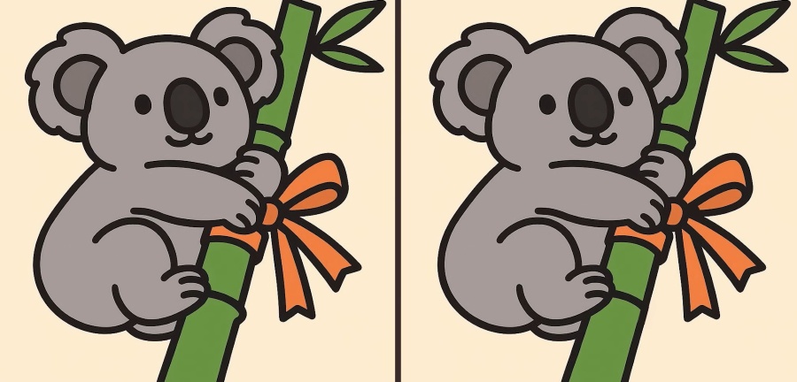 Tak čo, ste pripravení na ďalšiu výzvu? Pozrite sa pozorne na dva obrázky koaly objímajúcej bambus. Na prvý pohľad možno vyzerajú rovnako, ale sú tu tri malé rozdiely. Myslíte si, že ich všetky nájdete za 33 sekúnd? Vyskúšajte to a otestujte svoju ostrosť zraku!